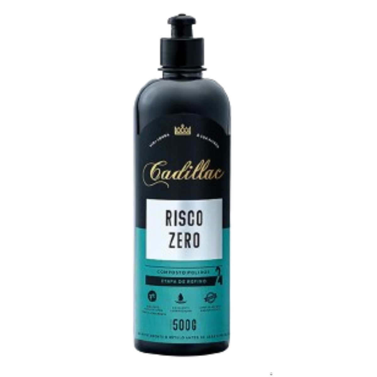 O Composto Polidor de Refino Risco Zero é uma opção de refino rápido e limpo, com um custo mais baixo e um ótimo rendimento no trabalho. Cadillac Risco Zero de Refino é um composto de refino com alto desempenho, desenvolvido com abrasivos de alta qualidade para garantir alta performance em corte, pouca produção de pó e alta capacidade de acabamento. Sendo um composto especialmente desenvolvido para etapa de refino durante o polimento automotivo, com finalidade de remover defeitos de pintura de grandeza de marcas de lixa 2000 a 2500 grit, de todos os tipos de pintura.
